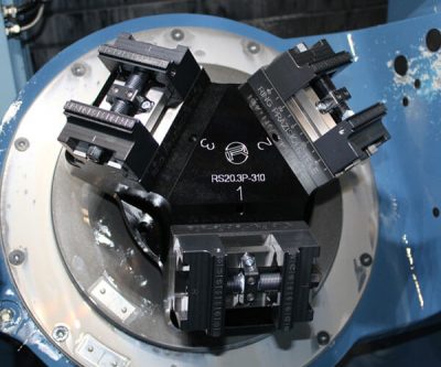 - zur Bearbeitung von drei Werkstücken in einer Aufspannung